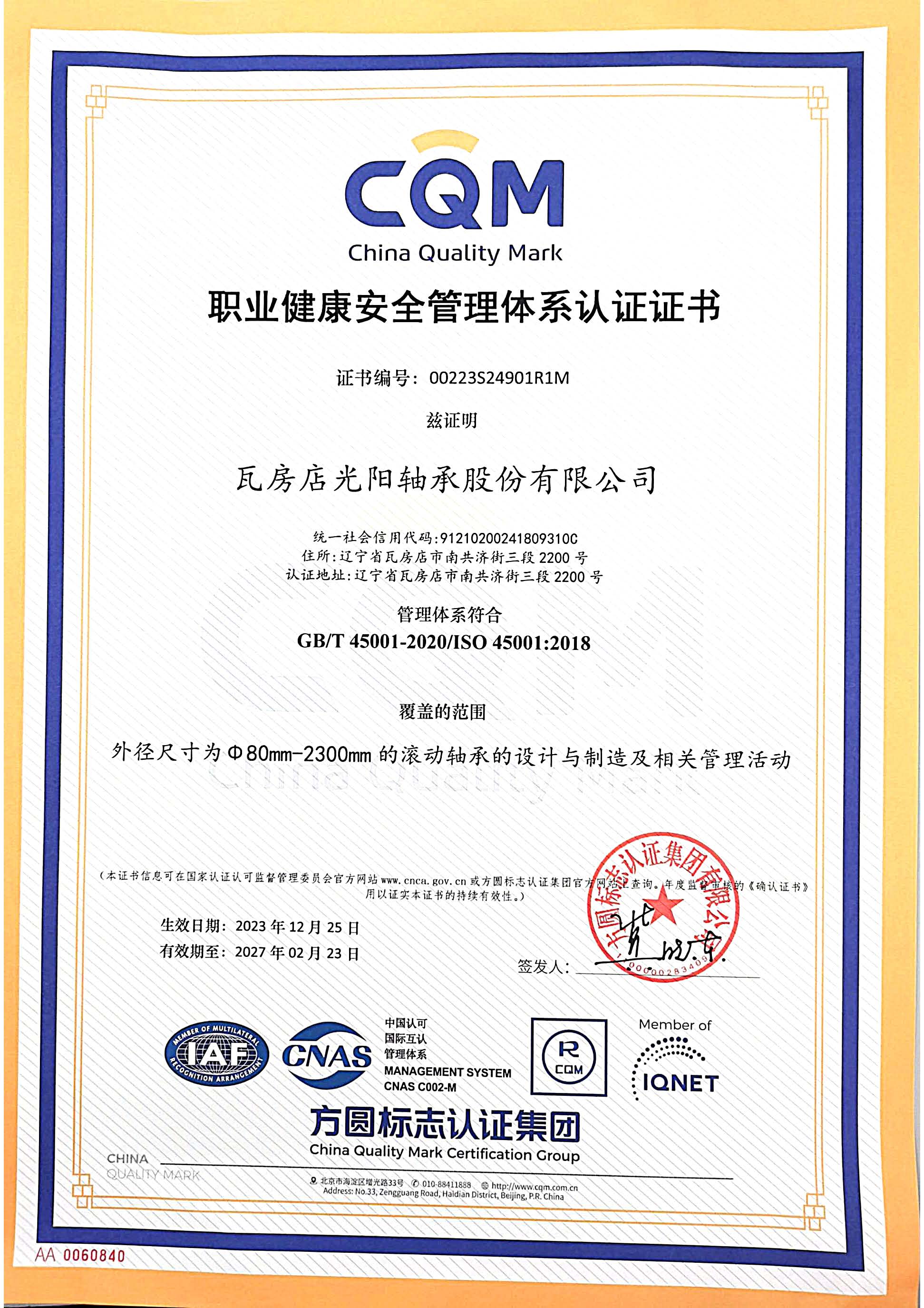 瓦房店光陽軸承股份有限公司
